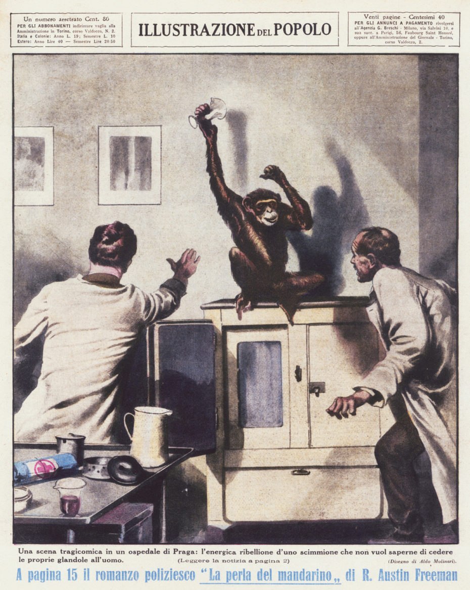 Ένας επαναστάτης πίθηκος αρνείται να παραδώσει τους αδένες του. Σχέδιο του Aldo Molinari.