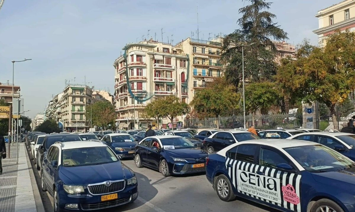Οι κόρνες των ταξί δεν σταμάτησαν να ηχούν με τους ιδιοκτήτες τους να ξεκινούν από τις 10 το πρωί μηχανοκίνητη πορεία από την οδό Μιχαήλ Ψελλού στην ανατολική Θεσσαλονίκη προς το ΥΜΑΘ όπου και έφτασαν γύρω στις 11:30.