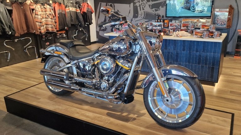 Ένα σπάνιο Fat Boy Grey Ghost που είναι και το μοναδικό στην Ελλάδα έχει στην αντιπροσωπεία της η Harley Davidson (στη Βάρης -Κορωπίου) . Η συγκεκριμένη είναι σε χρώμα… καθρέφτη, ένα χρώμα – πατέντα που έχει δημιουργήσει η αμερικάνικη μάρκα και βγάζει μάτια όταν το βλέπεις από κοντά.