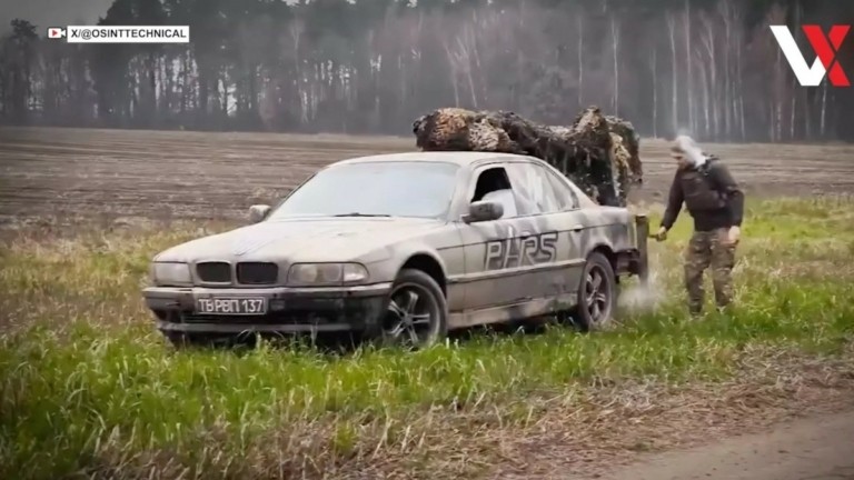 Ουκρανικές δυνάμεις κοντά στην πόλη Μπαχμούτ μετέτρεψαν BMW Σειρά 7 (E38) σε ένα αυτοσχέδιο σύστημα πολλαπλής εκτόξευσης ρουκετών (MLRS), τοποθετώντας βαρύ οπλισμό εκεί όπου κανονικά βρισκόταν το καπό του πορτμπαγκάζ.