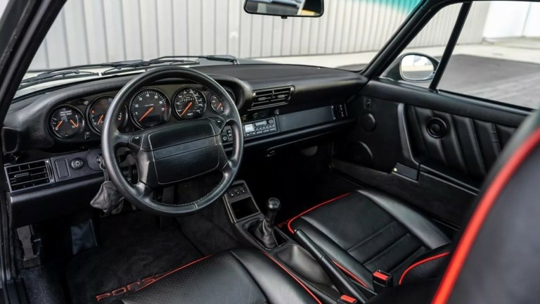 Στο εσωτερικό, το μαύρο δέρμα με κόκκινες ραφές ενισχύει τον συλλεκτικό χαρακτήρα, ενώ κάτω από το καπό βρίσκεται ο θρυλικός εξακύλινδρος boxer 3.6 λίτρων, με απόδοση 355 ίππων. Η χειροκίνητη 5τάχυτη μετάδοση και η κίνηση στους πίσω τροχούς προσφέρουν την αυθεντική, «αναλογική» εμπειρία που αναζητούν σήμερα οι συλλέκτες.