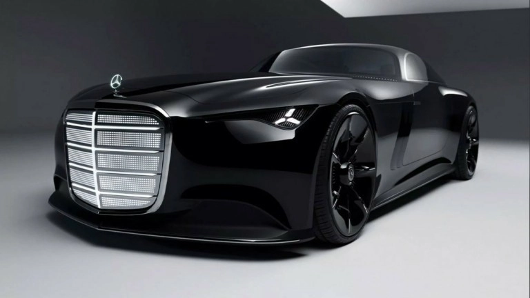 Η Mercedes-Benz με το Vision Iconic θυμίζει τη χρυσή εποχή του design της δεκαετίας του ’50. Η μάσκα με τις οριζόντιες χρωμιωμένες γρίλιες παραπέμπει ευθέως στα Ponton και 300SL, ενώ τα στρογγυλά φωτιστικά σώματα και η γλυπτική σιλουέτα ενώνουν το παρελθόν με την αεροδυναμική τελειότητα του σήμερα.