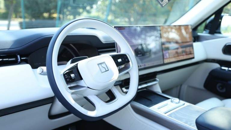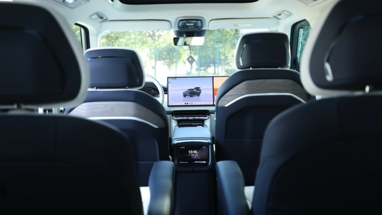 Στο ταμπλό δεσπόζει η διπλή οθόνη ΟLED των 16 ιντσών ανάλυσης 3,5Κ, για την πληροφόρηση του οδηγού φροντίζει το Head-Up Display επαυξημένης πραγματικότητας 47 ιντσών, ενώ για τους πίσω επιβάτες υπάρχει οθόνη ΟLED 17’’ 3K, η οποία μετακινείται κατά μήκος μιας ράγας μήκους 88 εκατοστών.