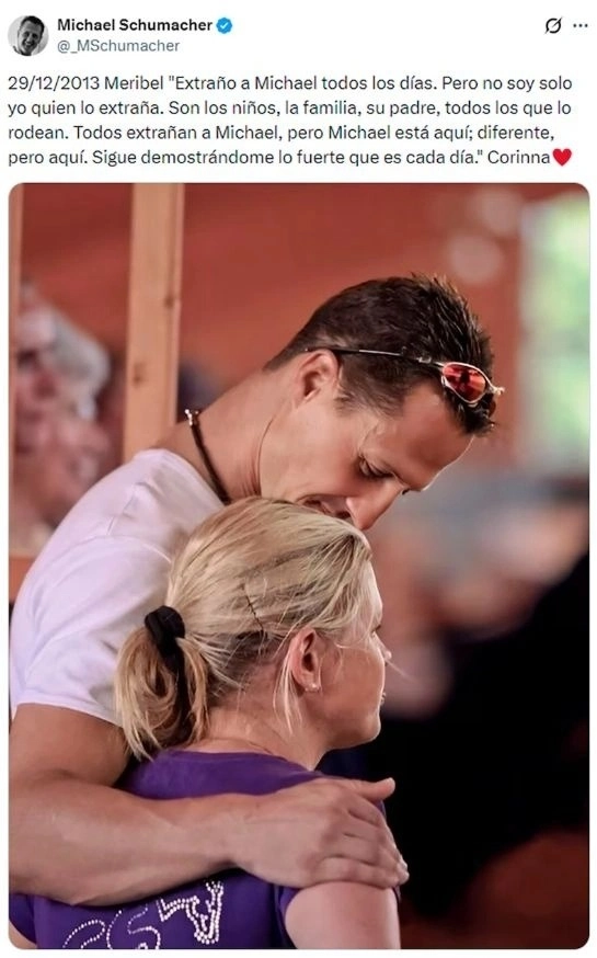Με τη συμπλήρωση 12 ετών από το ατύχημα στις γαλλικές Άλπεις, η Κορίνα Σουμάχερ δημοσίευσε ένα ιδιαίτερα φορτισμένο μήνυμα στους επίσημους λογαριασμούς του επτάκις παγκόσμιου πρωταθλητή.
