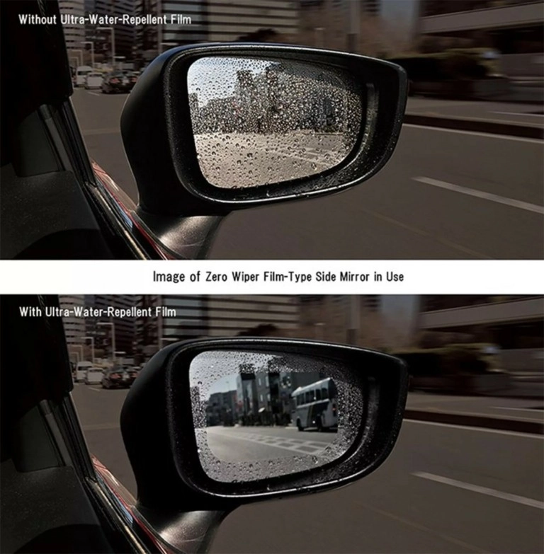 Ωστόσο, φαίνεται πως επιτέλους βρέθηκε μία πρακτική απάντηση σε αυτό το πρόβλημα. Η ιαπωνική Car Mate ετοιμάζεται να παρουσιάσει στις ΗΠΑ μια ειδική υδροαπωθητική μεμβράνη για τους πλαϊνούς καθρέφτες, η οποία δεν βασίζεται ούτε σε ηλεκτρονικά συστήματα ούτε σε κινούμενα μέρη.