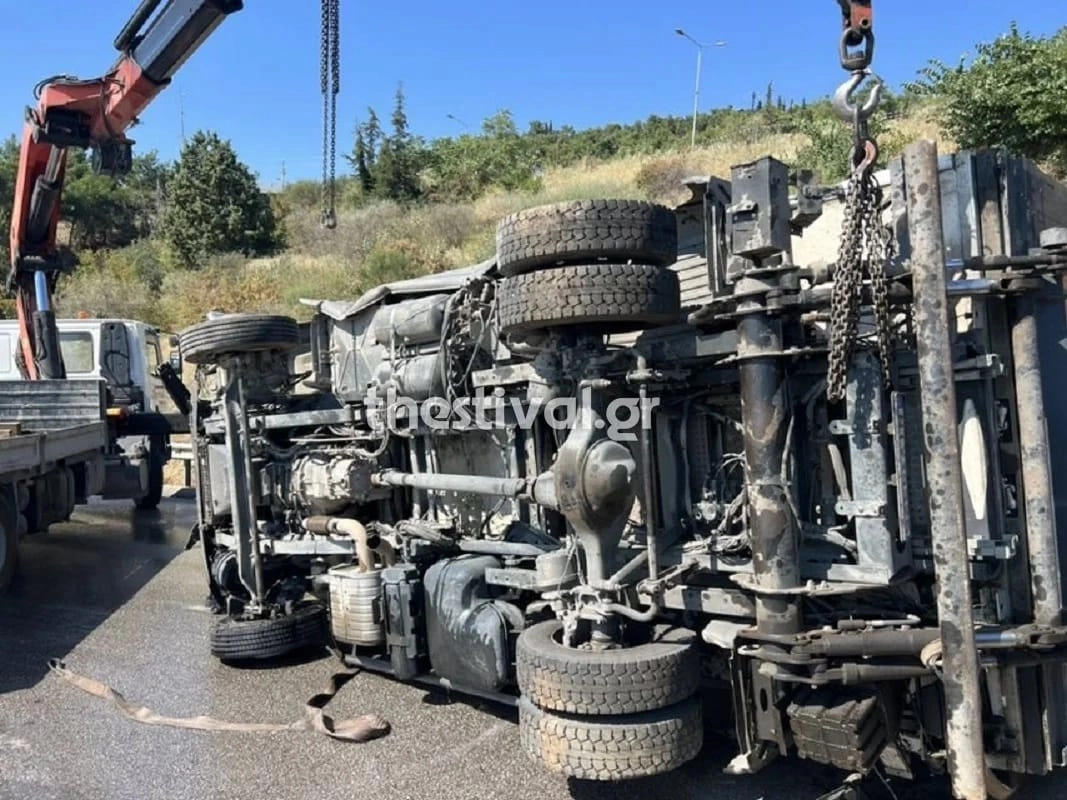Σύμφωνα με πληροφορίες το συμβάν έγινε λίγο πριν τις 11:00 το πρωί στο ρεύμα εισόδου, όταν υπό άγνωστες συνθήκες το φορτηγό εξετράπη της πορείας του και «δίπλωσε». Στο συμβάν επιχείρησαν ένα όχημα μικρού όγκου (Smart) και ένα συμβατικό ασθενοφόρο.