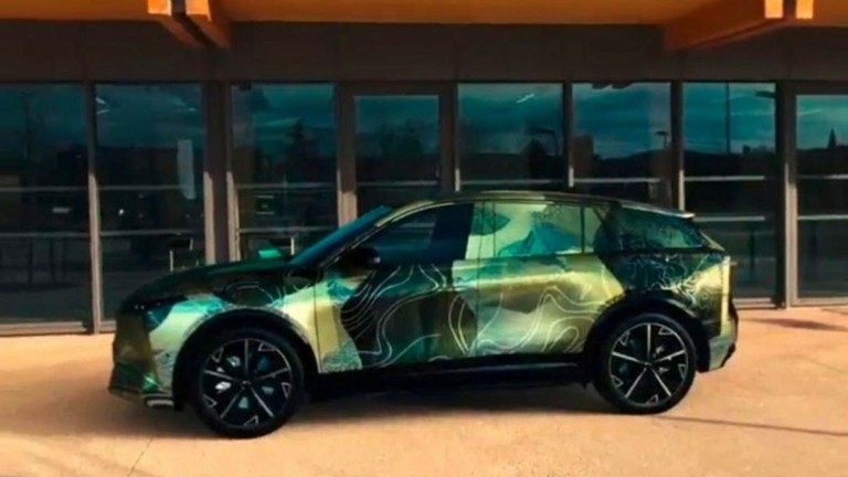 Στις σχετικές εικόνες, οι οποίες είναι σκοπίμως χαμηλής ανάλυσης και σχετικά θολές, βλέπουμε ένα αυτοκίνητο με σχετικά καμουφλαρισμένο αμάξωμα το οποίο έχει ως φόντο πίσω του μια πόρτα βιομηχανικού κτηρίου στην οποία αναγράφεται ο αριθμός επτά.
