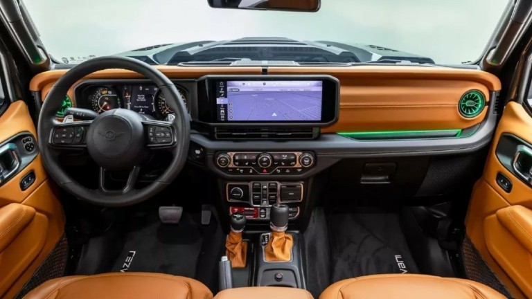 Σχεδιαστικά, το νέο Tank είναι πιο επιθετικό από ποτέ, με έντονες γωνίες και flat γραμμές, χωρίς καμία εμφανή αναφορά στο Wrangler εξωτερικά. Αντίθετα, στο εσωτερικό διατηρείται σε μεγάλο βαθμό η καμπίνα του Jeep, με αναβαθμισμένα υλικά, νέες επενδύσεις καθισμάτων και πιο premium λεπτομέρειες.
