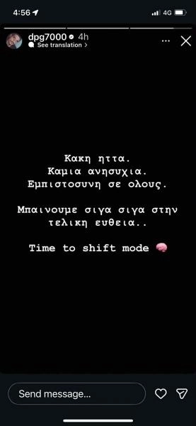 «Κακή ήττα. Καμία ανησυχία. Εμπιστοσύνη σε όλους. Μπαίνουμε σιγά σιγά στην τελική ευθεία. Time to shift mode», ανέφερε στο μήνυμά του ο ισχυρός άνδρας του Παναθηναϊκού.