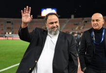 Η υψωμένη γροθιά του Βαγγέλη Μαρινάκη και οι πανηγυρισμοί των παικτών του Ολυμπιακού για...