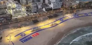 «Σε ευχαριστούμε»: Τεράστιο σύνθημα σε παραλία του Τελ Αβίβ για τον...